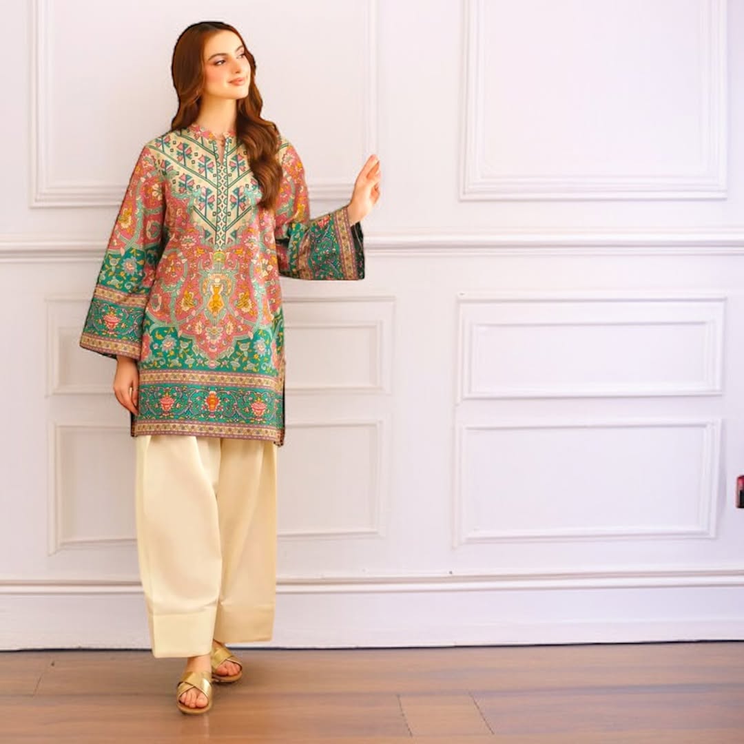 Elevate your style with NB Fashion’s Premium Silk 2-Piece Printed Suit — where luxury meets elegance. Crafted from high-quality silk fabric, this stitched outfit offers a soft, smooth texture with a graceful drape. The vibrant prints add a modern charm, making it perfect for both casual outings and festive gatherings.